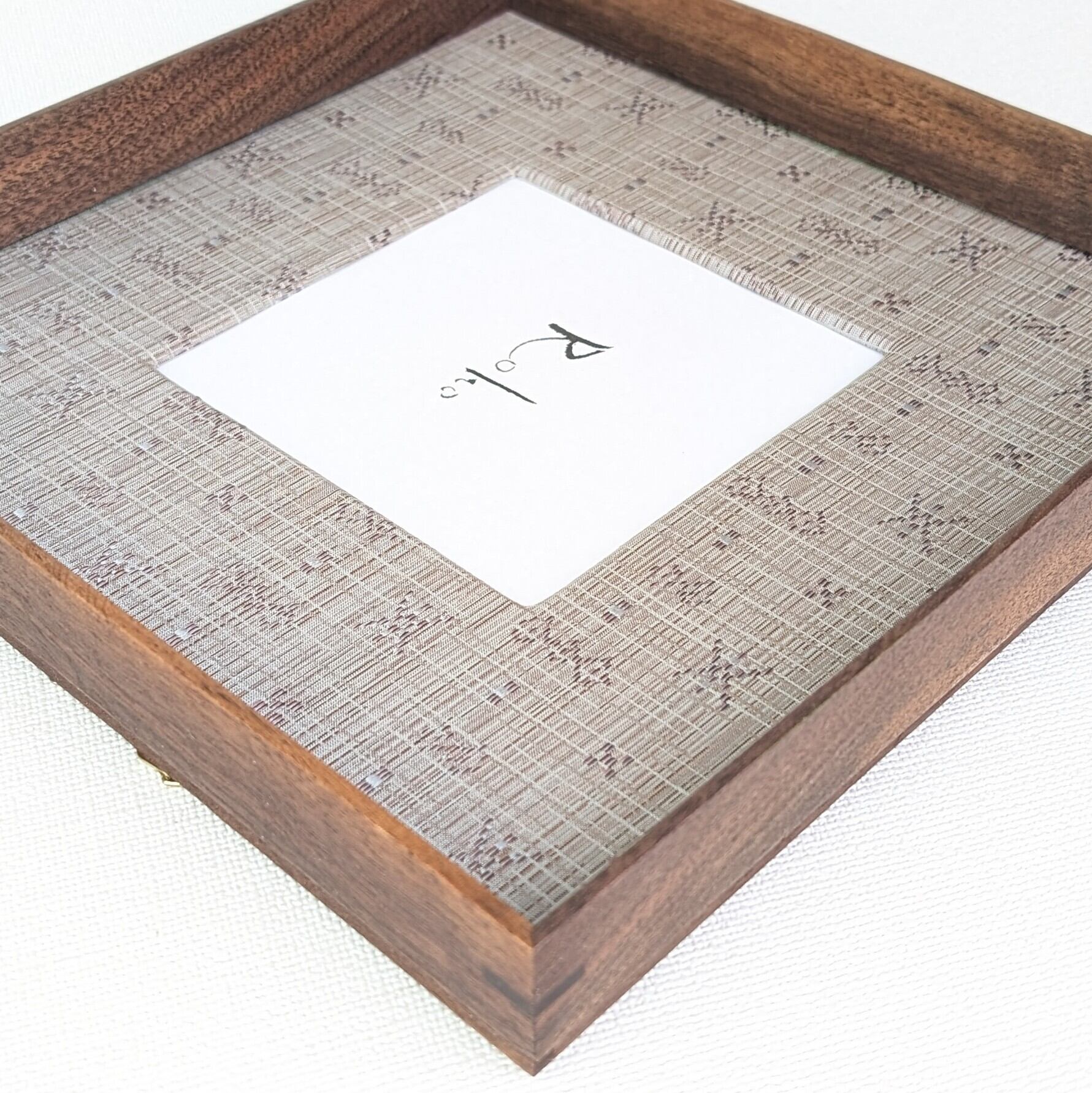こちらの作品はウォールナット材を用いた、テーパー加工した外縁の額縁です。