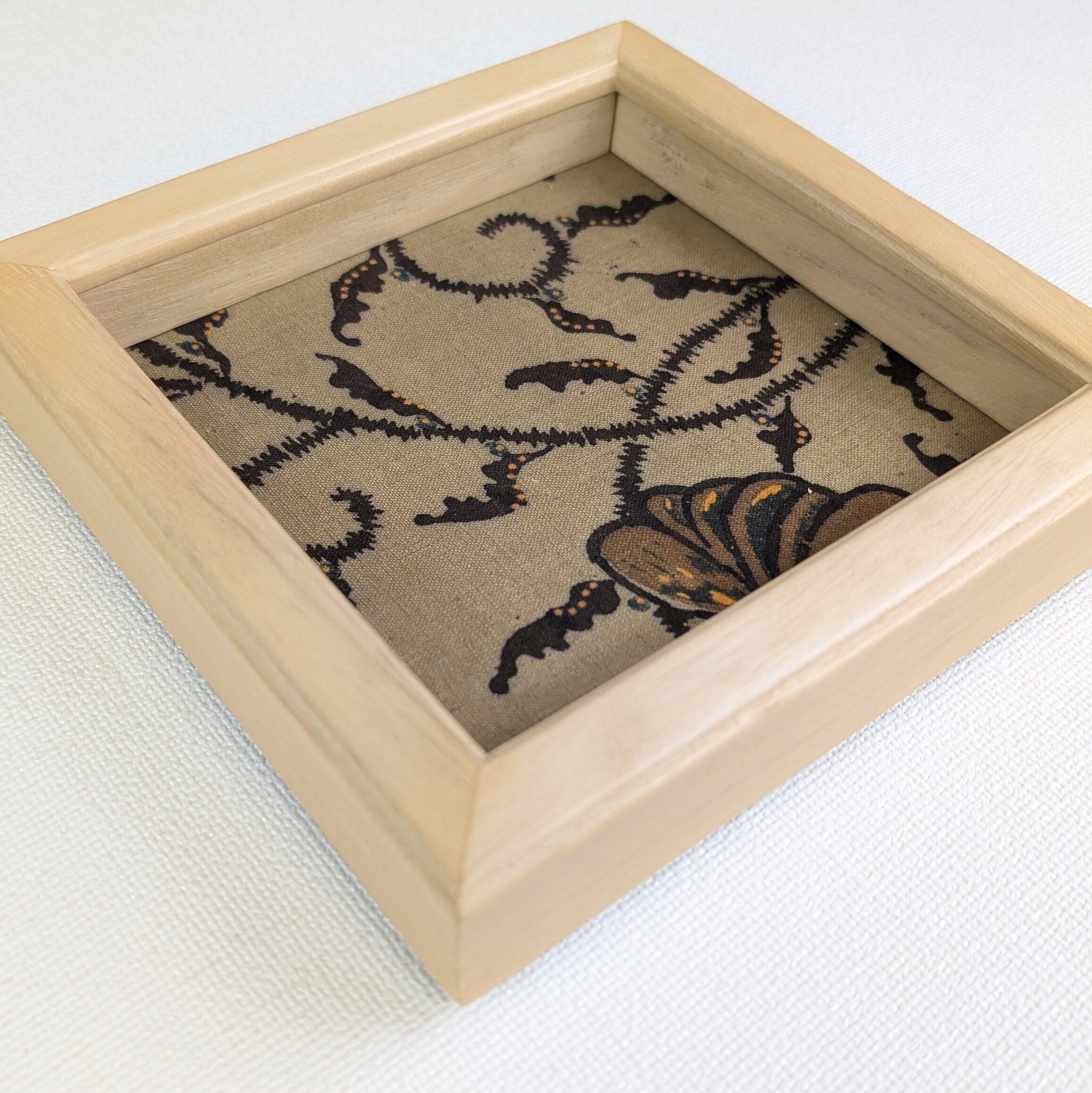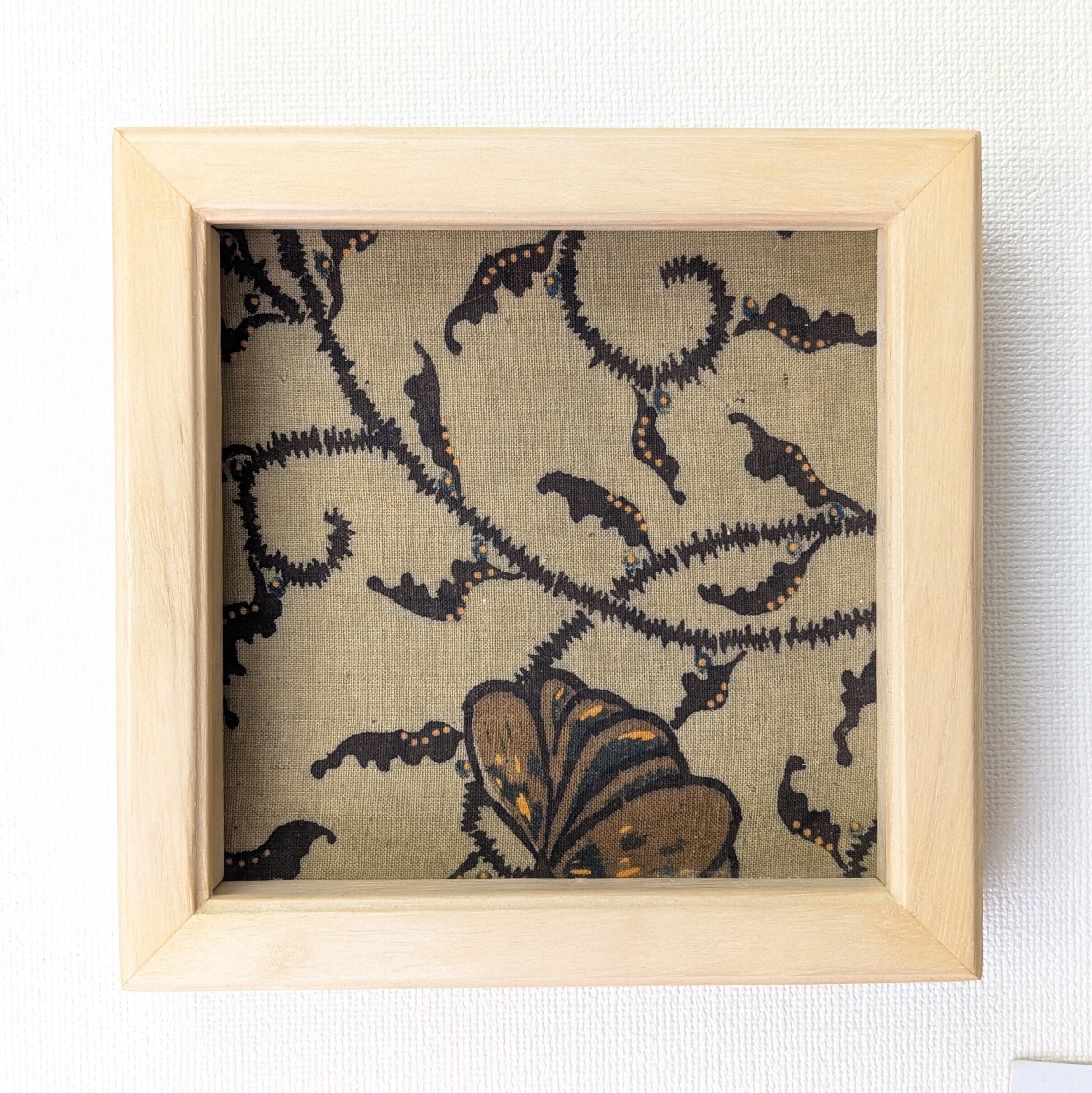 「予約販売」天然木 無垢 キリ材 窓寸13.4㎝角 ボックス型額縁 時代更紗(古布)貼りマット