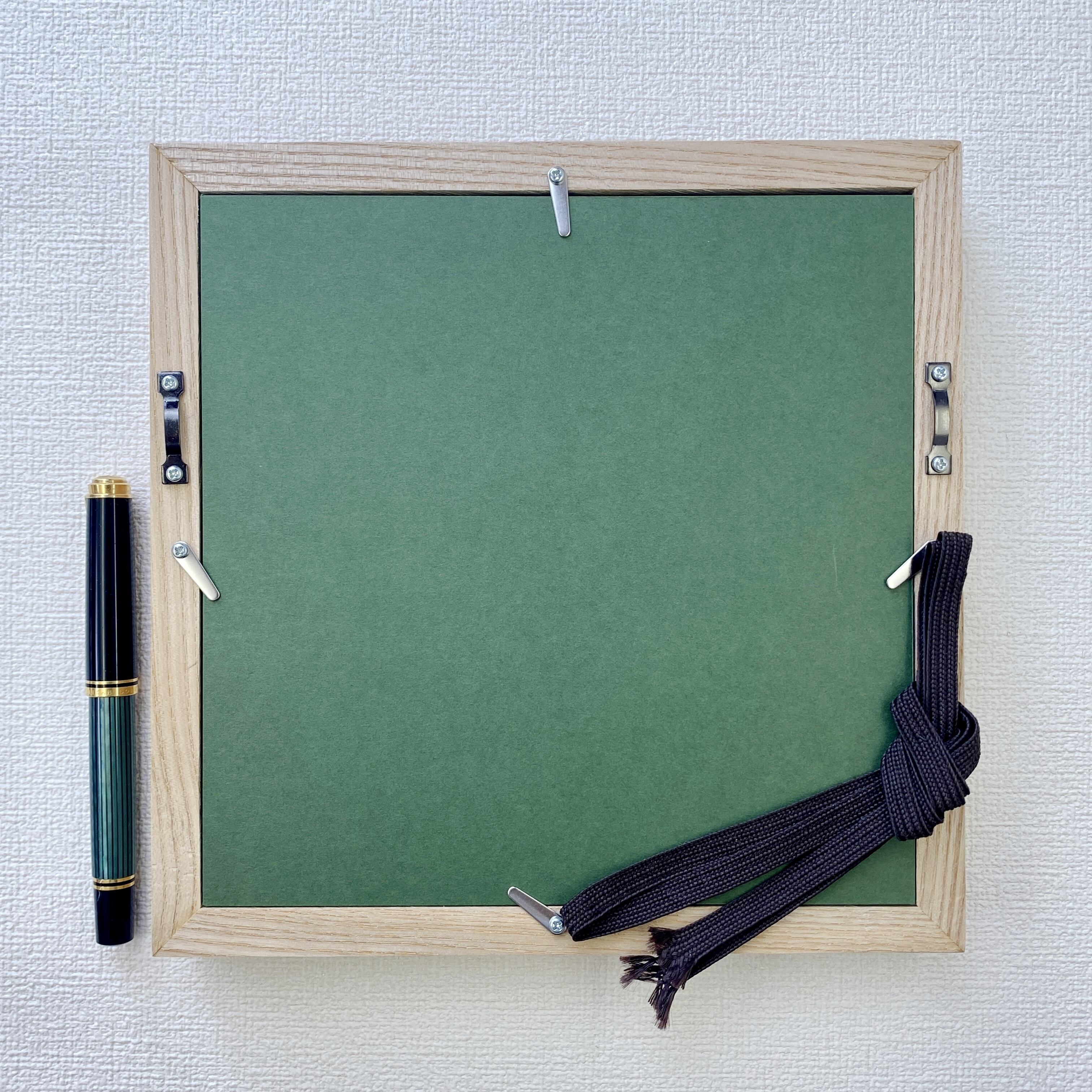 「受注制作」天然木 無垢 タモ額縁 表具裂地マット [外寸21㎝角、窓寸10.6㎝角]