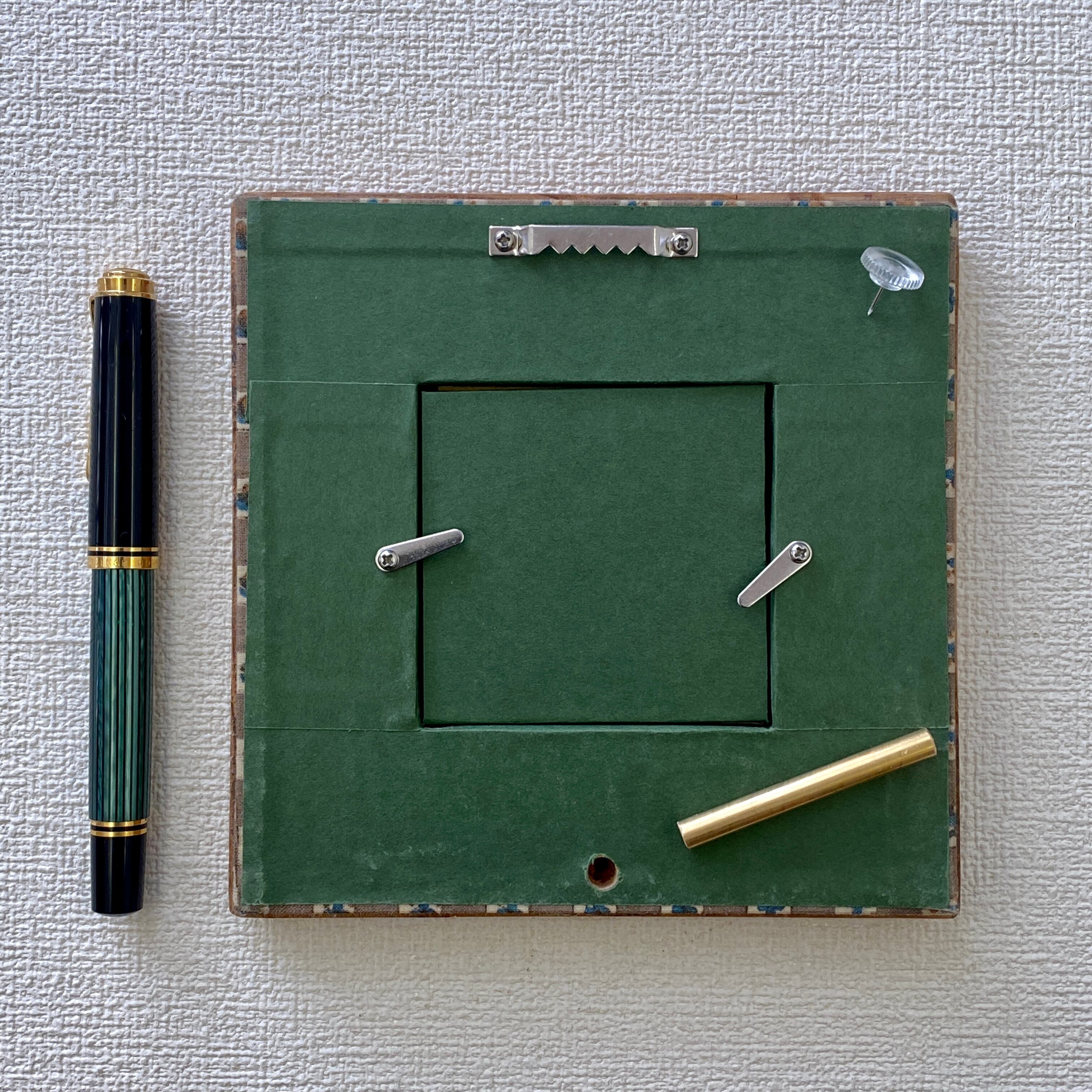 ※付属の真鍮丸棒を裏の穴に差し込むことにより立て掛けて飾ってもいただけます。