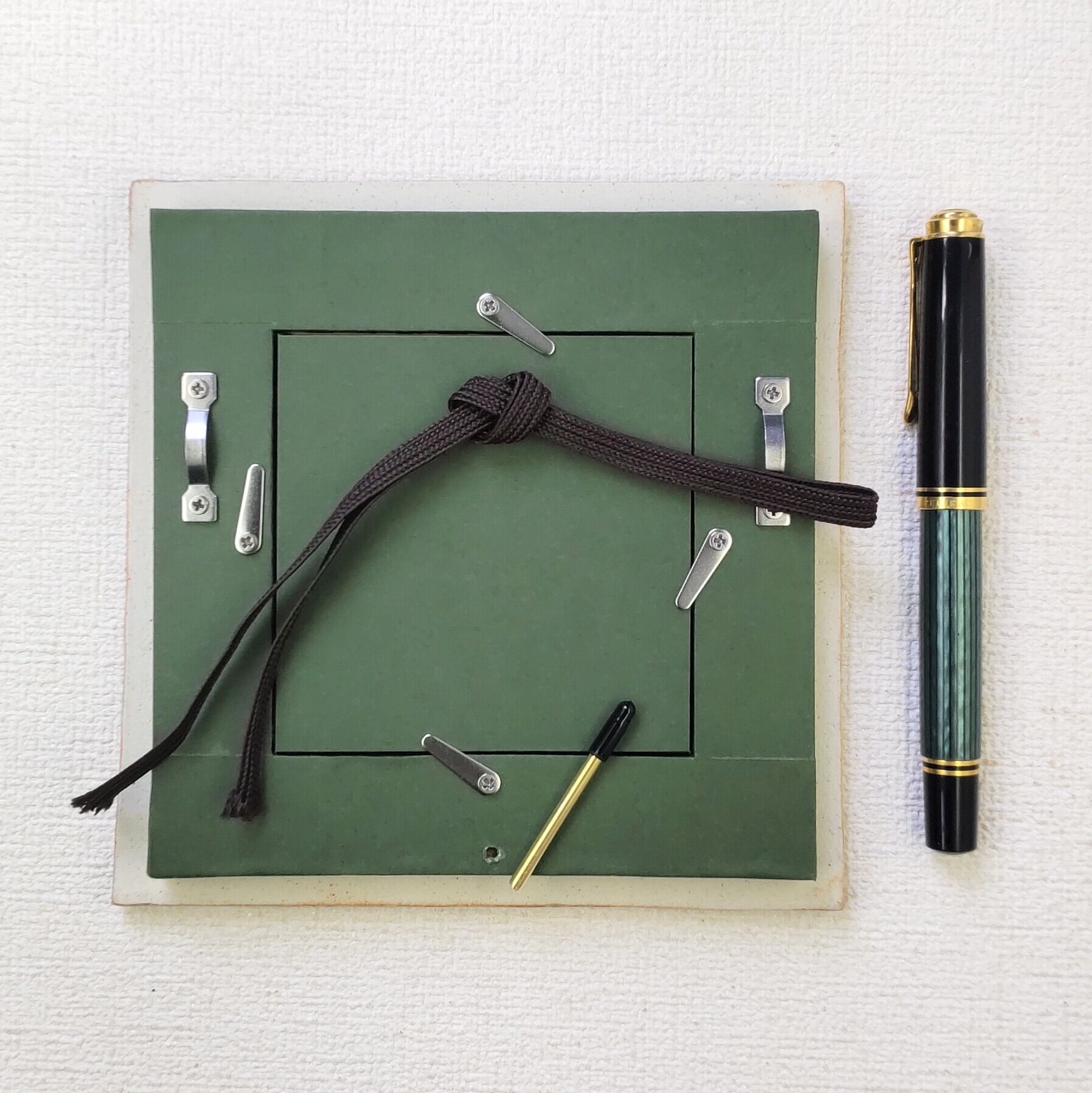 こちらの作品はめずらしい陶製の額縁です。陶芸作家に依頼し焼成をしていただいた陶板を当アトリエが額縁に仕立てております。
